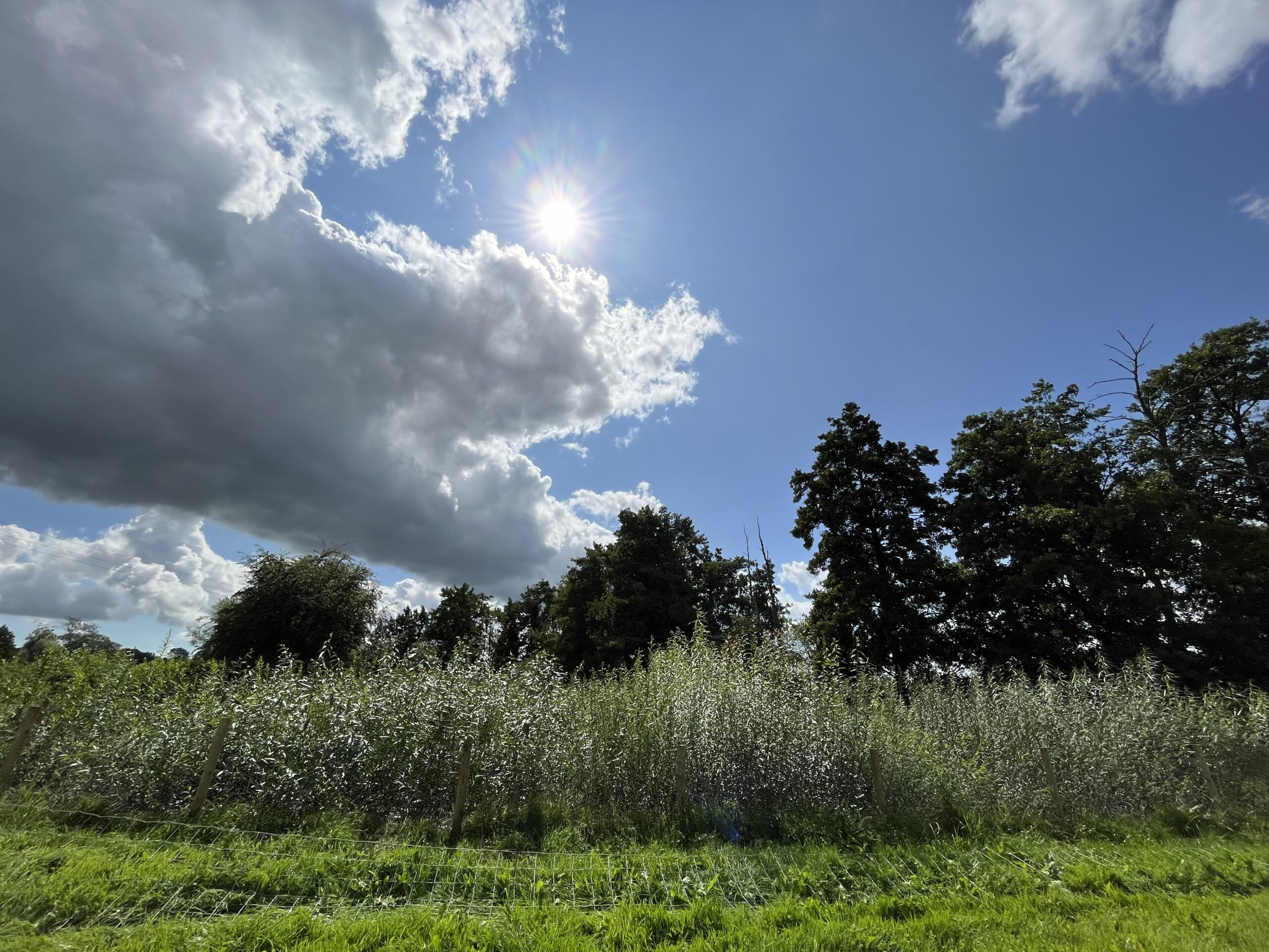 I started to feel that there was a greater purpose to my weaving and a deeper connection to the natural materials I was using. This is especially true since I have planted (and now harvested by hand) my first crop of willow. For the willow to be grown and woven into coffins here on our small Herefordshire farm reduces the carbon footprint of our coffins considerably. The material travels less than 0.5 miles from field to workshop where I know that it has been organically grown, with no use of pesticides or herbicides and is 100% sustainable .